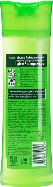 - Шампунь Чиста Лінія Сила 5 трав Для всіх типів волосся 400мл