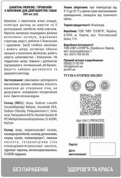 - Шампунь для собак з довгою шерстю ProVET Profiline з кератином 300мл