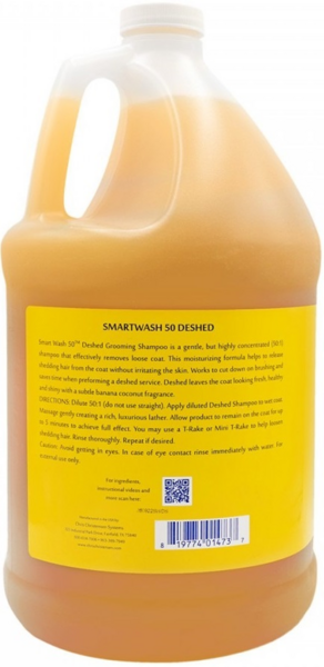 Шампунь SmartWash50 De-Shed від Chris Christensen – це м'який, висококонцентрований засіб, що ефективно видаляє шерсть, яка линяє. Продукт допомагає видалити волосинки, що випали із шерсті, не подразнюючи шкіру.