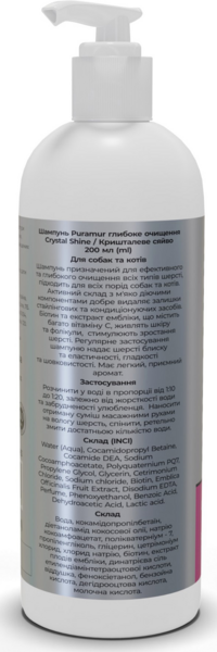 - Шампунь для собак та котів Puramur Crystal Shine глибоке очищення 200мл