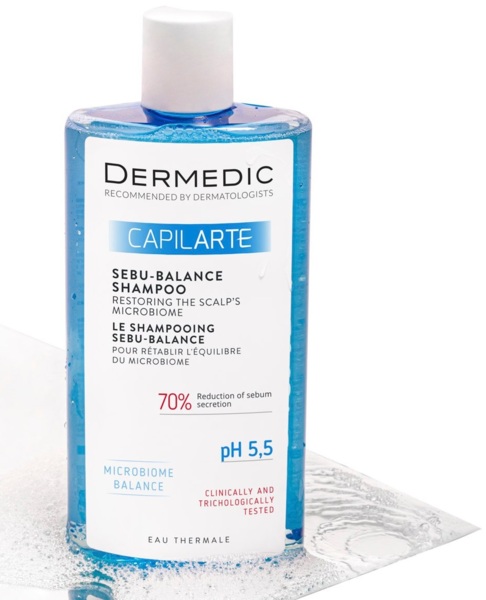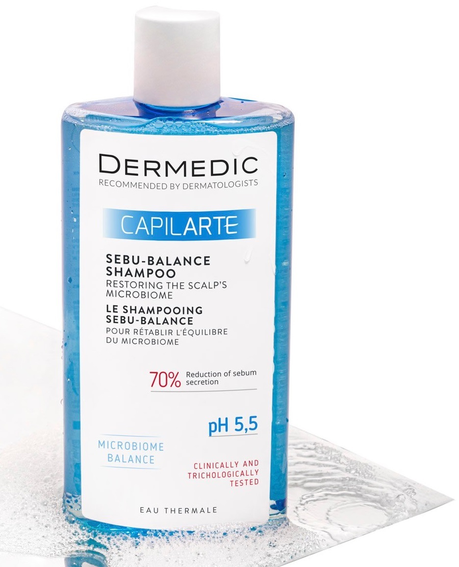 - Шампунь для жирного волосся Dermedic Capilarte відновлює мікробіом шкіри голови 300 мл