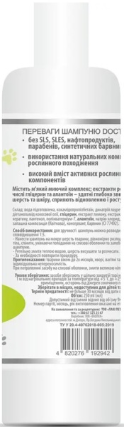 Шампунь Doctor Vet - це спеціалізований засіб для догляду за шерстю і шкірою собак, призначений для регулярного миття і підтримки чистоти вашого домашнього улюбленця. Містить м'який мийний комплекс, здатний глибоко зволожувати шерсть і шкіру, сприяє відновленню і росту волосся. Це важливий засіб для підтримки гігієни, здоров'я і приємного вигляду вашого домашнього улюбленця. Вибір відповідного шампуню і регулярний догляд допоможуть вашій собаці відчувати себе комфортно і мати гарний вигляд шерсті.
