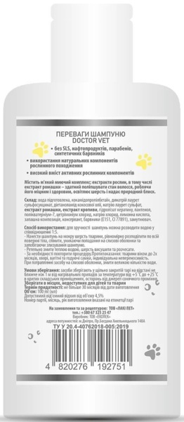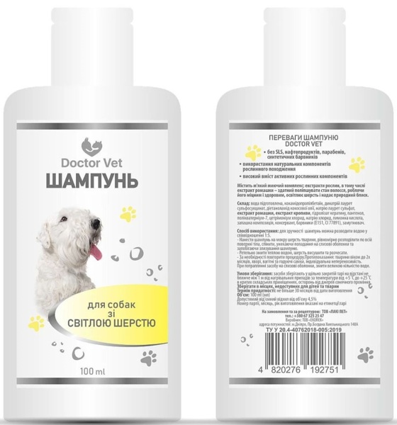 - Шампунь Doctor Vet для собак зі світлою шерстю 100 мл