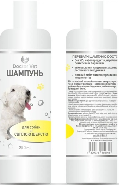 - Шампунь Doctor Vet для собак зі світлою шерстю 250 мл