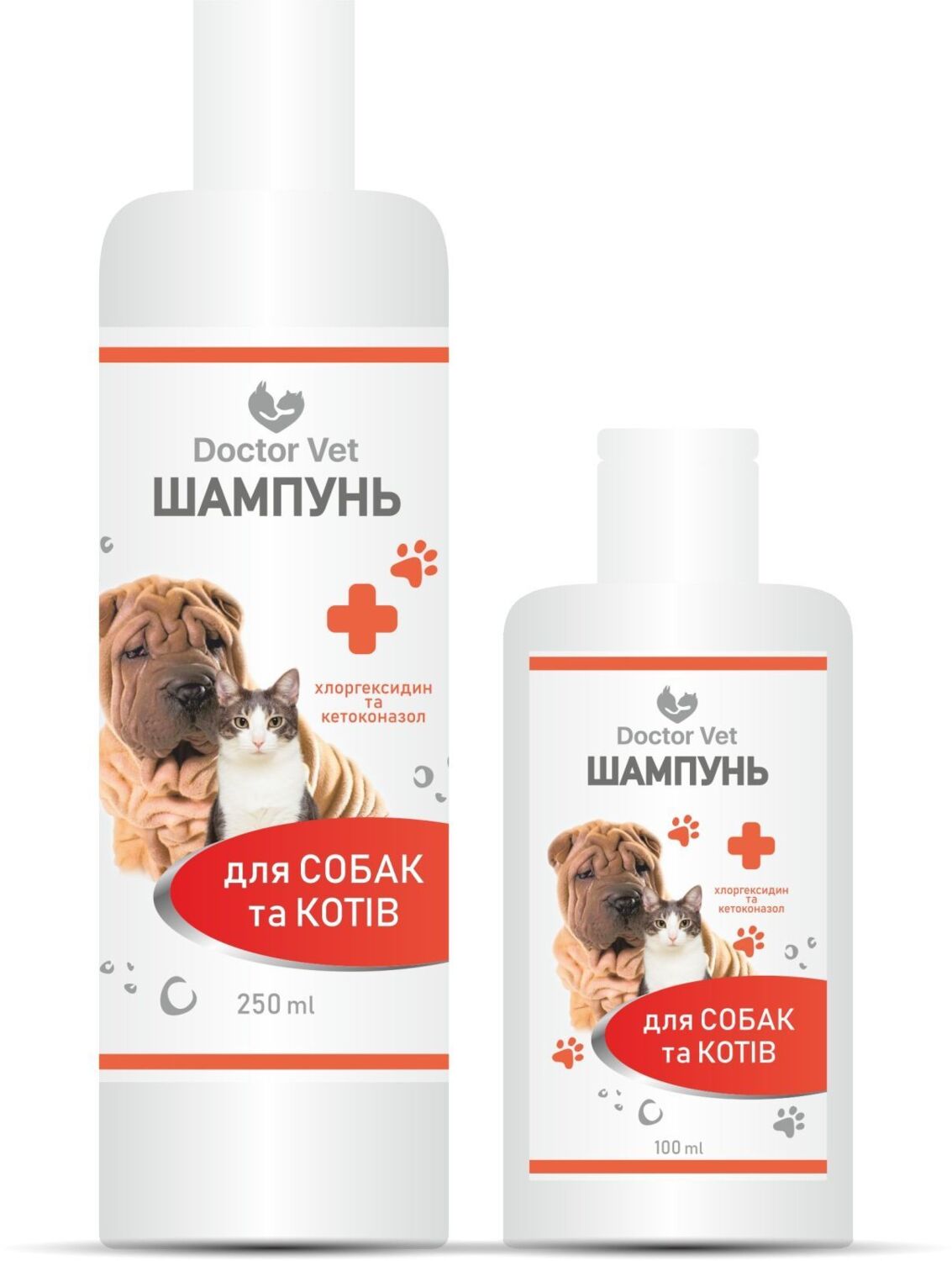 - Шампунь Doctor Vet хлоргексидин та кетоконазол для собак та котів 250 мл