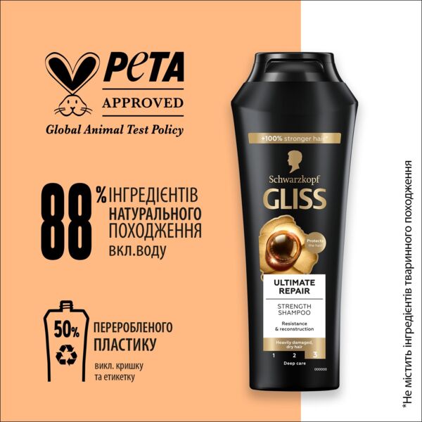- Шампунь Gliss Kur Ultimate Repair Екстремальне відновлення 250 мл