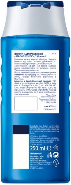 Шампунь Strong power для чоловіків - це засіб, який дозволить зберегти здоров'я та силу вашого волосся, навіть в умовах екстремального навантаження. Нова формула з морськими мінералами надає волоссю зміцнюючий ефект, працюючи дбайливо та не втручаючись у природний баланс шкіри голови. Після використання цього шампуню ваше волосся виглядатиме більш здоровим та сильним. Nivea завжди піклується про здоров'я вашого волосся та про безпеку навколишнього середовища. Новий продукт має 99% біорозкладну та веганську формулу, і, важливо зауважити, не містить частинок мікропластику.