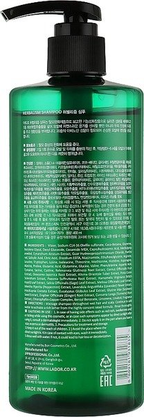 Слабокислотний трав'яний шампунь з амінокислотами La'dor Herbalism Shampoo глибоко відновлює й оздоровлює ослаблене волосся та подразнену шкіру голови, зміцнює волосяні цибулини, перешкоджає випаданню та ламкості. Шампунь ретельно очищає шкіру голови, не порушуючи її природного pH балансу, усуває лущення і лупу, повертає локонам м'якість і блиск. Засіб делікатно впливає на шкіру голови, стимулює ріст волосся і утворення нових волосяних фолікул, зміцнює коріння і нейтралізує агресивний вплив проточної води, фена, засобів для укладки і чинників довкілля. Володіє низькокислотним рівнем pH 4.8, завдяки чому забезпечує глибоке очищення, не порушуючи природний гідро-ліпідний баланс, і підтримує оптимальну зволоженість шкіри. Перешкоджає зайвому себовиділенню, регулює роботу сальних залоз, усуває жирний блиск. Шампунь активно живить і зволожує шкіру, під час контакту з водою утворює легку піну, яка м'яко видаляє себум, пил, забруднення і залишки косметичних засобів, загоює і освіжає. Засіб не містить парабенів, силіконів, сульфатів і штучних барвників. Підходить для ослабленого волосся.