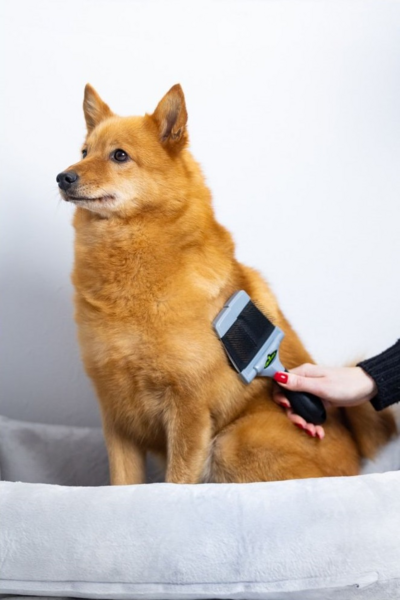 - Вигнуті щетинки видаляють ковтуни та сплутану шерсть, не пошкоджуючи її.