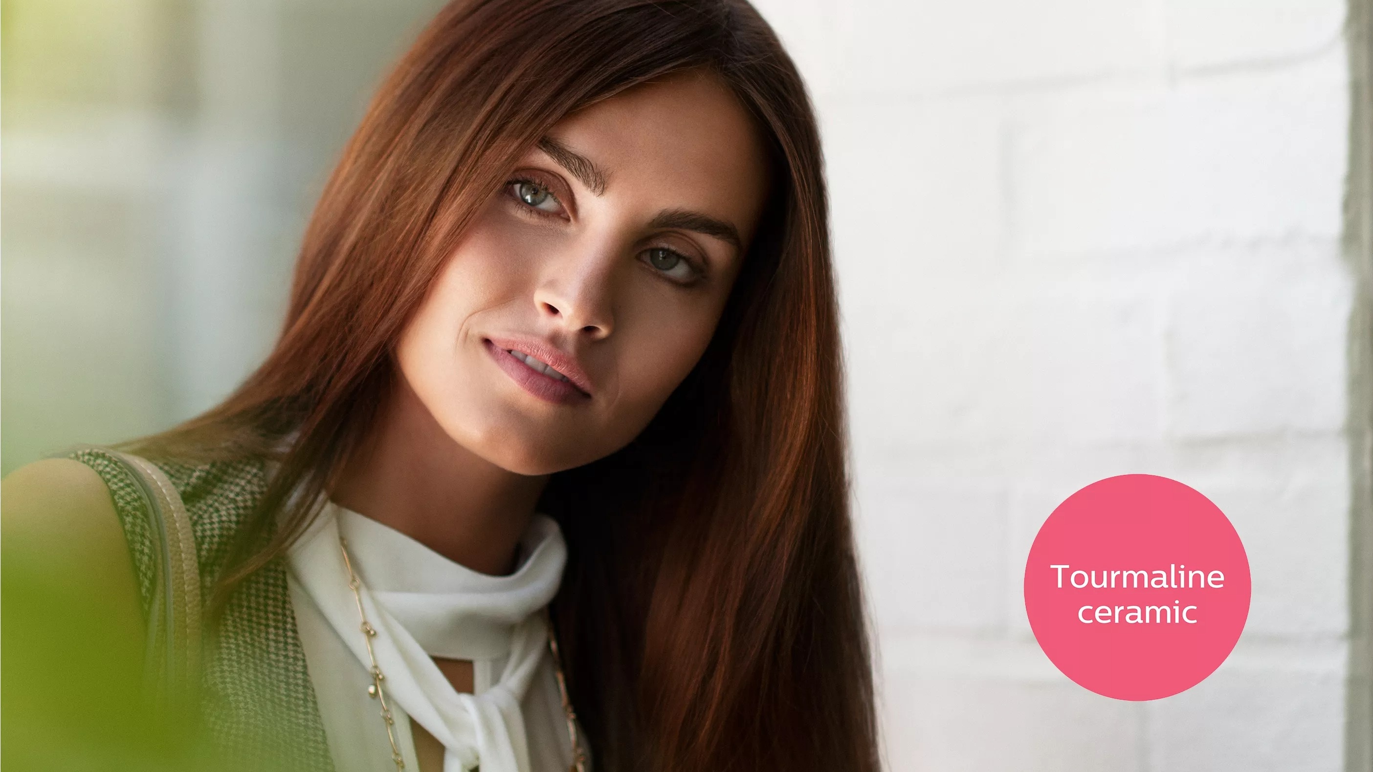 Турмалінове керамічне покриття для блискучого, гладенького, слухняного волосся.