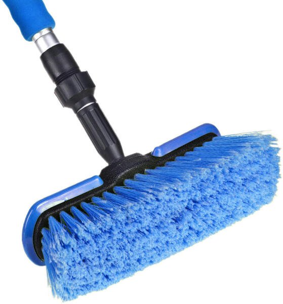 Для змивання миючого засобу передбачено штуцер для підключення шланга. Щітка стійка до води, побутової та автомобільної хімії, падінь, ударів та інших негативних впливів. Довжина щітки 23 см.