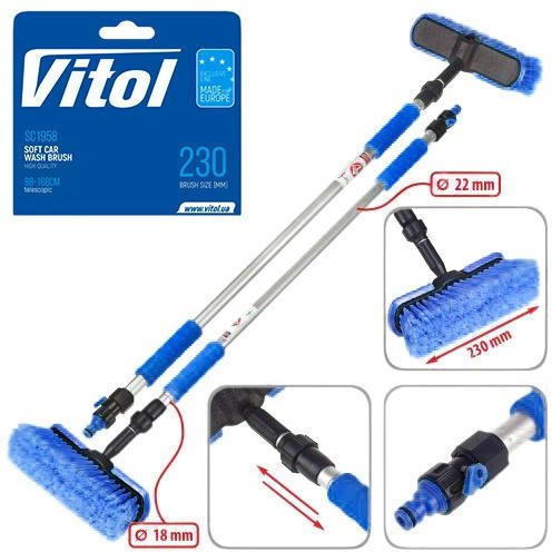 Щітка для миття автомобілів від Vitol – найкращий помічник для догляду за Вашим автомобілем. У конструкції щітки передбачена довга телескопічна ручка, яка розтягується до 168 см, роблячи миття авто максимально зручним та ефективним.