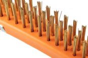 Щітка оснащена 3 рядами по 19 пучків міцного латунного дроту. Цей дріт має високу стійкість до корозії та забезпечує ефективне видалення забруднень.