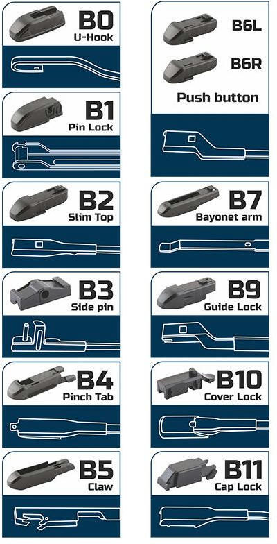 | Тип кріплення | Байонет, Бічний затискач, Бічний штир, Кнопка, Гачок |