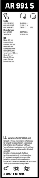 - Щітки склоочисника Bosch Aerotwin AR991S безкаркасні 650мм/575мм 2шт (3397118991) (465261)