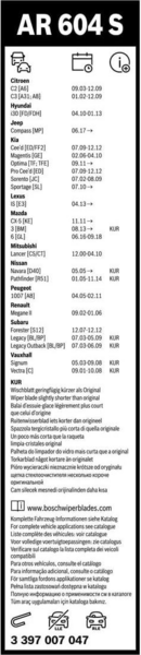Двірники Bosch Aerotwin виготовляються з високоякісних матеріалів із застосуванням сучасних технологій. Основою їх конструкції є еластична пластина, що забезпечує рівномірний притиск до вітрового скла незалежно від його кривизни. Гумка очищувача, що є основною робочою деталлю двірника, зроблена з багатокомпонентної гуми з додаванням натурального каучуку та графітовим напиленням. Це виключає скрипи та прослизання під час роботи, а також запобігає дряпанню вітрового скла. Сумісний з автомобілями Citroen, Hyundai, Jeep, Kia, Lexus, Mazda, Mitsubishi, Nissan, Peugeot, Renault, Subaru, Vauxhall.