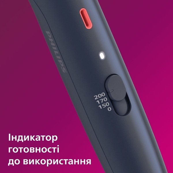 - Три налаштування температури (150 °C, 170 °C, 200 °C) відповідно до типу волосся.