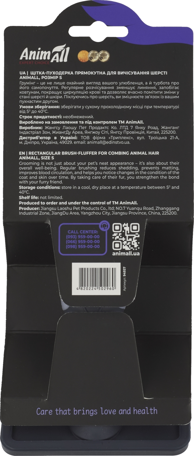 - Щітка-пуходерка AnimAll прямокутна для вичісування шерсті розмір S (174х80х40 мм)