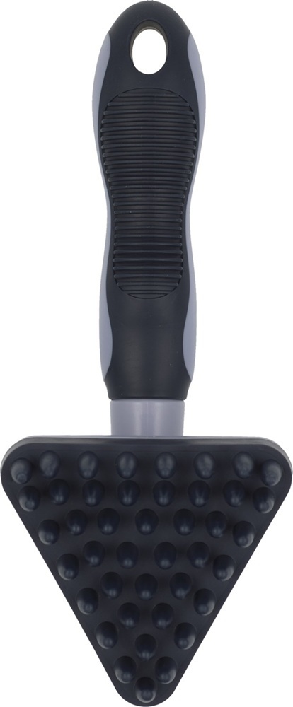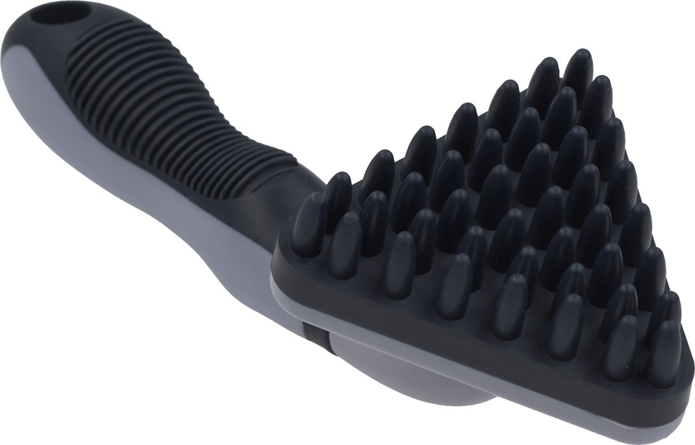 Щільні еластичні зубці м'яко прочісують шерсть, одночасно виконуючи масаж, що стимулює кровообіг та роботу волосяних фолікулів. Це сприяє зростанню міцної та блискучої шерсті, зменшує випадання та робить догляд приємним навіть для чутливих тварин. Антистатичні властивості запобігають електризації, завдяки чому шерсть залишається гладкою та рівною.