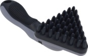 Щітка підходить як для сухого розчісування, так і для використання під час купання – легко ковзає по вологій шерсті, допомагає рівномірно розподіляти шампунь і робить водні процедури більш комфортними. Ергономічна гумова ручка ABS і PP забезпечує надійне утримання навіть у вологих руках, а міцні матеріали гарантують тривалий термін служби.