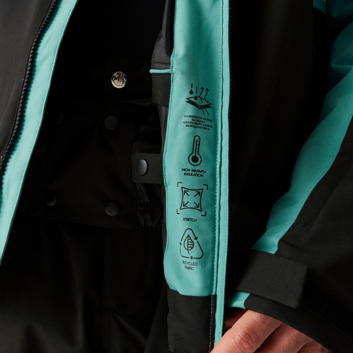Куртка виготовлена з тканини ARED 30/30, вона є водонепроникною, вітрозахисною та дихаючою, а також має утеплювач з високим рівнем теплоізоляції. Стійка до стирання та оснащена безліччю функцій для лижників, таких як серветка для окулярів, снігозахисний пояс і петлі для великого пальця — це справжня функціональність для справжніх днів у пухкому снігу.