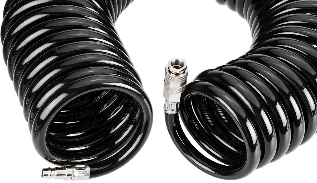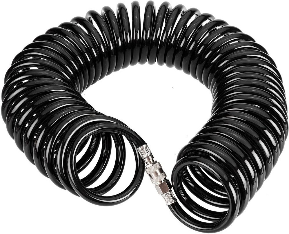 Пневматичний спіральний шланг від Neo Tools призначений для складних застосувань, забезпечуючи надійне рішення для підключення пневматичних інструментів та компресорів. Має спіральну конструкцію, яка запобігає заплутуванню та перегинам, забезпечуючи безперебійну роботу. З максимальним тиском 16 бар він підходить для важких завдань у професійних і промислових умовах. Шланг виготовлений з міцного поліетилену, що забезпечує гнучкість і довговічність. Застосовується як лінія подачі стисненого повітря, наприклад, від компресора до пневматичних інструментів, а також як лінія від компресора до продувних пістолетів. До нього можна приєднати різні інструменти, наприклад, насосний наконечник із манометром.