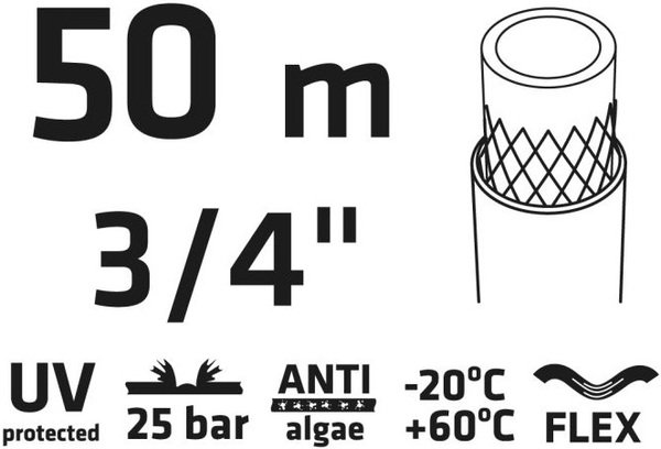Ця модель має довжину 50 м і діаметр 3/4". Ідеально підходить для повсякденного використання протягом багатьох сезонів. З його допомогою можна поливати квіти, газони та город.