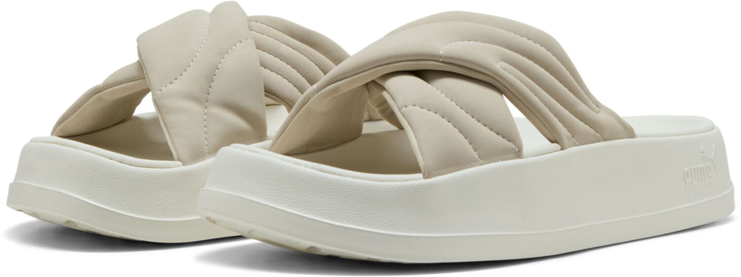 Зробіть акцент на своєму стилі з цими шльопанцями на платформі від Puma. М’який верх із гладкого нубуку надає образу жіночності, а легка устілка з EVA дарує відчуття комфорту завдяки хорошій амортизації. Неважливо, куди прямуєте — у місті чи на відпочинку, — у цих шльопанцях ногам буде зручно цілий день.