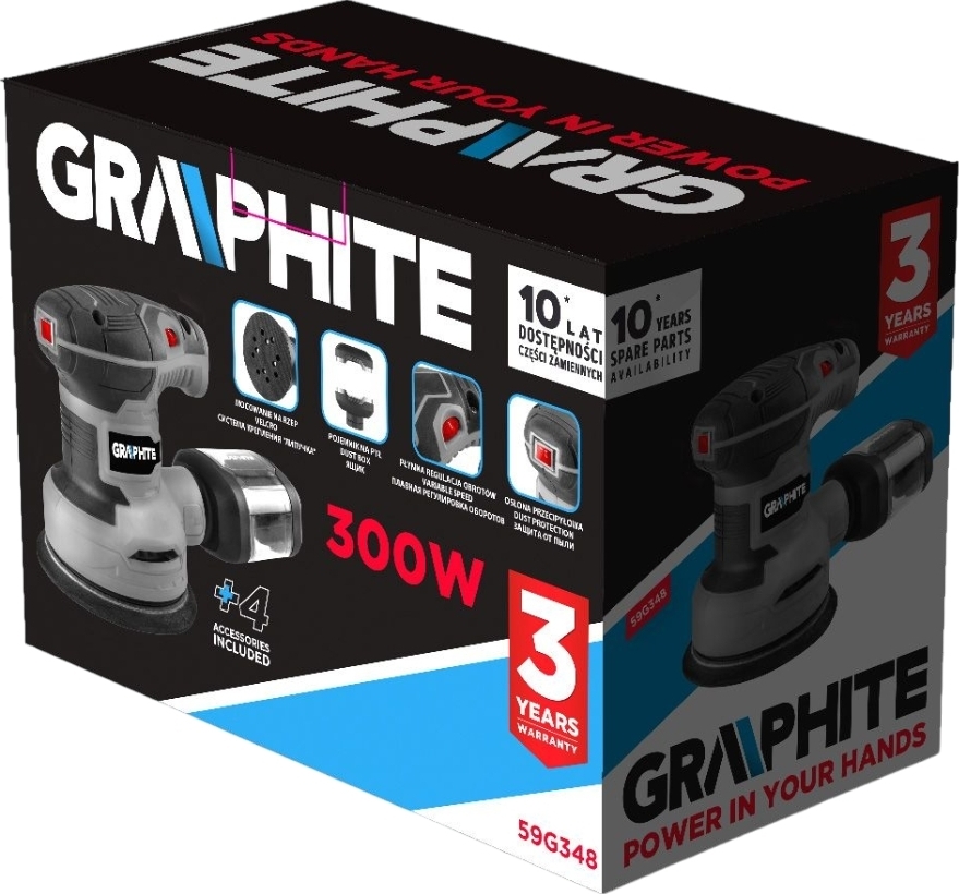 - Шліфмашина ексцентрикова GRAPHITE 300Вт 125мм 7000-13000об/хв (59G348)