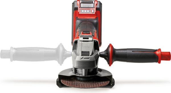 Акумуляторна кутова шліфувальна машина Einhell оснащена допоміжною ручкою, яку можна встановити у 2 положеннях. Це дозволяє гнучко адаптувати пристрій до відповідної робочої ситуації та забезпечує додаткову безпеку під час використання. Міцний корпус кутової шліфувальної машини оснащений рельєфною опорною поверхнею для безпечного встановлення пристрою.