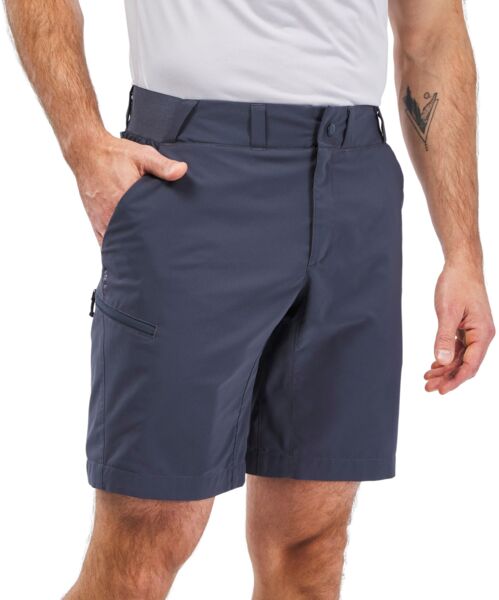 Прямий крій і тканина з механічною розтяжкою забезпечують свободу рухів на маршруті. Напівеластичний пояс із петлями дозволяє використовувати ремінь для кращої фіксації. Виготовлені з легкої синтетичної тканини, що сприяє ефективному відведенню вологи й швидкому висиханню. Екодизайн передбачає використання вторинного поліестеру — це зменшує вплив на довкілля, зберігаючи при цьому необхідні технічні характеристики.