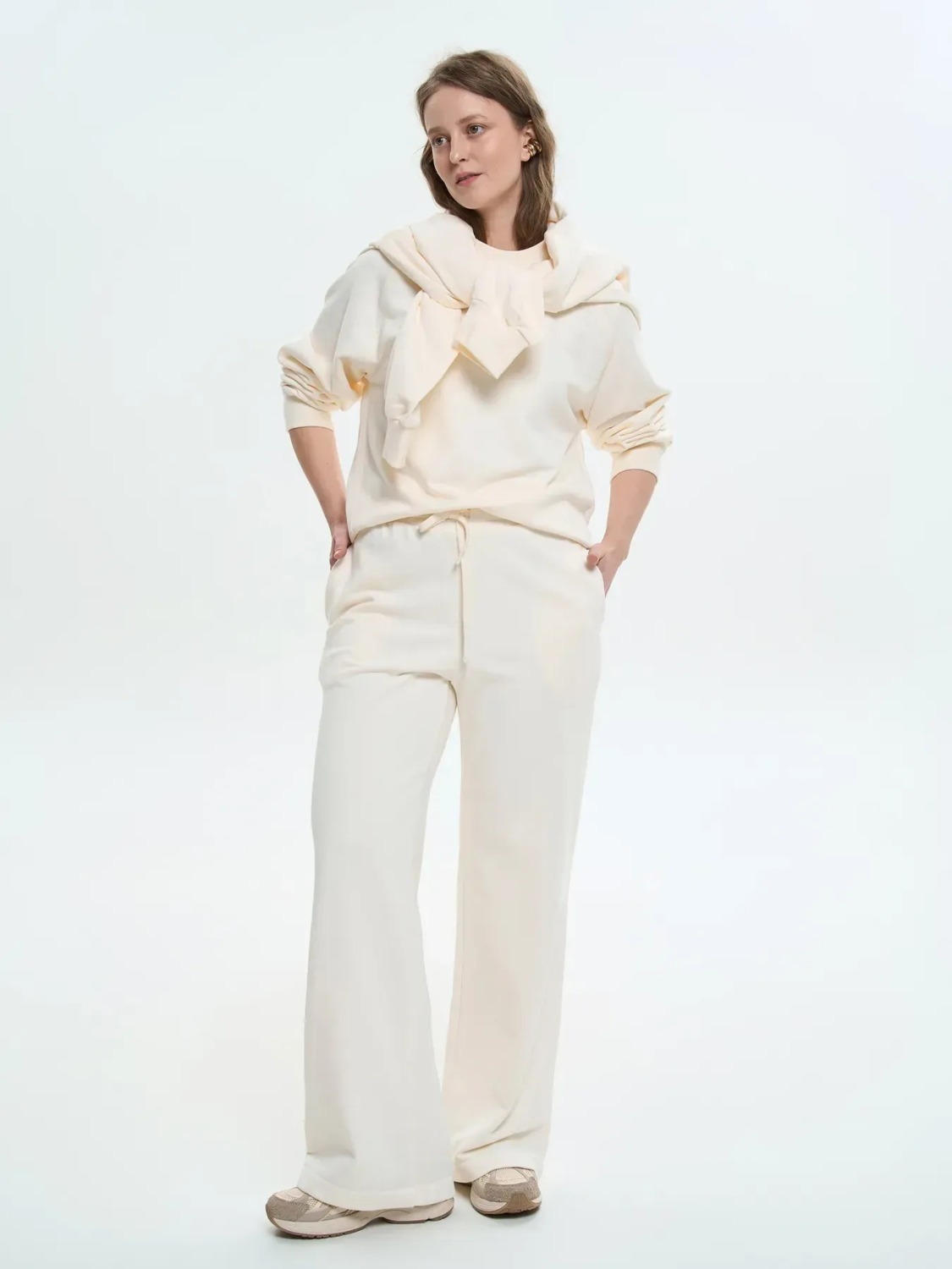 Жіночі широкі штани – це ідеальне поєднання комфорту та стильного силуету. Вільний крій забезпечує легкість рухів, а м’яка струмлива тканина красиво лягає по фігурі. Пояс на резинці зі шнурком дозволяє легко регулювати посадку, забезпечуючи максимальну зручність. У бічних швах розміщені функціональні кишені, які додають практичності. Завдяки своєму лаконічному дизайну штани легко комбінуються з базовими футболками, світшотами та худі, створюючи стильні образи для будь-яких ситуацій.