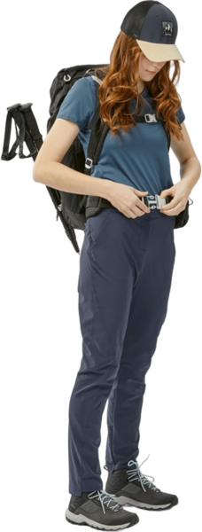 Ці штани мають приталений крій і забезпечують велику свободу рухів завдяки механічному еластичному матеріалу (без еластану). Напівеластичний пояс також забезпечує кращу посадку на талії. Нарешті, петлі для ременя дозволяють носити власний ремінь, якщо ви хочете.