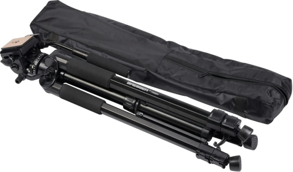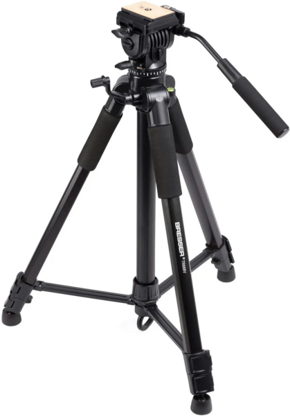 Надійний алюмінієвий штатив Bresser Video TR-688V підходить для біноклів, зорових труб, відеокамер, фотокамер та має ергономічну головку для плавного панорамування. Максимальне навантаження на штатив до 3 кг. Три телескопічні ніжки штатива можна індивідуально регулювати по довжині завдяки практичним цанговим затискам, які вважаються одними з найнадійніших серед затисків такого класу. Кожна з ніжок має спеціальні гумові упори для стійкості штатива в будь-якому положенні та на будь-якій поверхні. Ідеально підходить для знімання на природі. Фільмування на 360° не становить проблеми з двостороннім нахилом. За допомогою ручки головку штатива можна плавно обертати на 360°. Крім того, камеру можна нахиляти до 90° по двох осях. Інтегрований водяний рівень забезпечить необхідну точність.Хочете швидко перемикатися між камерами з різними об’єктивами та налаштуваннями - зі швидкознімною пластиною це не проблема.