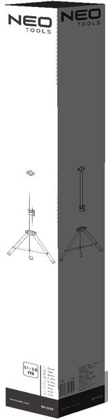 Штатив призначений для ІЧ-обігрівачів Neo Tools. Штатив регулюється висотою в діапазоні від 1,1 до 1,8 м. Продукт має стабільну конструкцію. Через можливість носити штатив разом з ІЧ-обігрівачем, користувач отримує зручне і мобільне джерело тепла.
