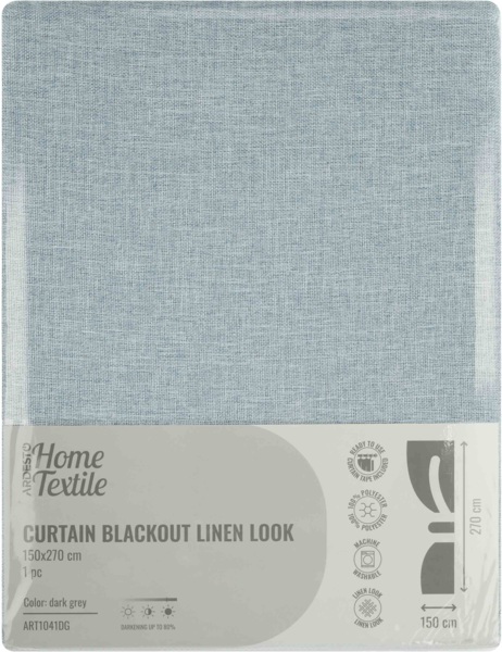 - Штора ARDESTO 150х270см, блекаут рогожка, 100% поліестер, сірий темний (ART1041DG)