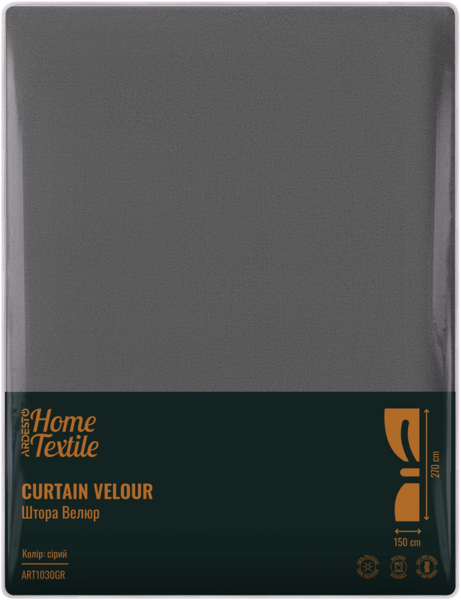 - Штора ARDESTO 150х270см, велюр, 100% поліестер, сірий (ART1030GR)
