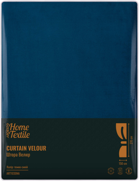 - Штора ARDESTO 150х270см, велюр, 100% поліестер, синій темний (ART1030NA)