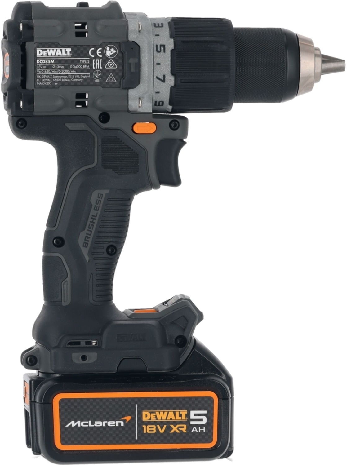 - Шуруповерт ударний акумуляторний DeWalt McLaren F1 Team Limited Edition 18В 2х5А·ч (DCD85MP2T)