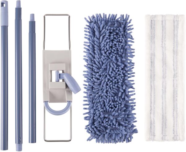 - Швабра виготовлена з металу, пластика, поліестеру та поліпропілену.