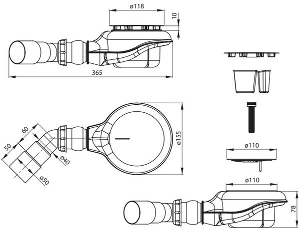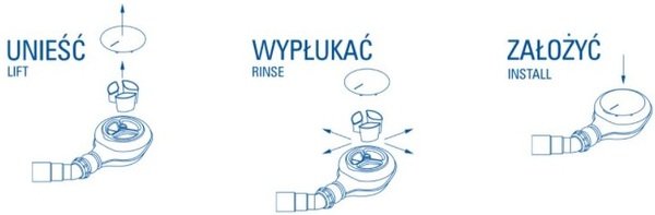 Продукт призначений для душових піддонів. Сифон має систему Easy-clean, яка дозволяє швидко і легко очистити виріб. Просто підніміть верхній рухомий елемент і промийте під струменем води.