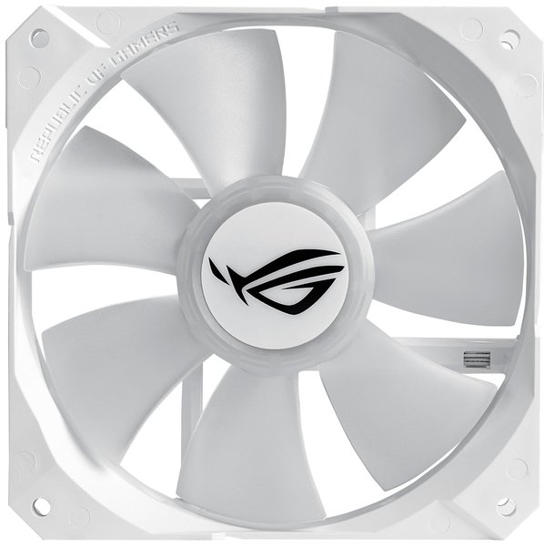 Вентилятор ROG спеціально оптимізований під радіатор кулера серії ROG Strix LC White Edition і має відмінні характеристики: повітряний потік – 81 CFM, статичний тиск – 5,0 мм H2O.