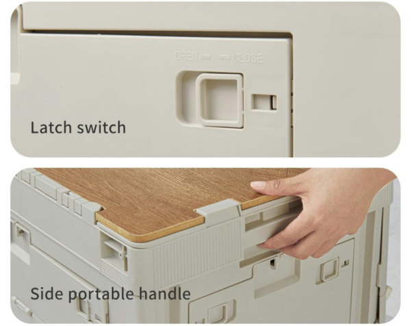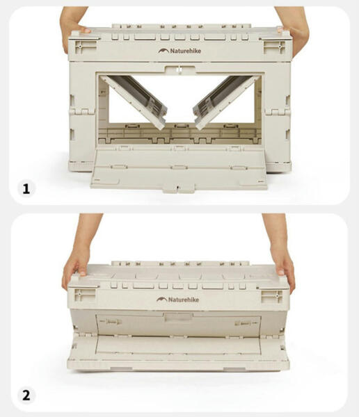 Контейнер розкладається до розмірів 36,5х26,5х28,5 см і оснащений дверцятами з чотирьох боків для швидкого доступу до речей. Зручні бічні ручки полегшують перенесення. У складеному вигляді його розміри становлять 36,5х26,5х7,5 см, а вага — лише 1,8 кг, що робить контейнер компактним для транспортування та зберігання.