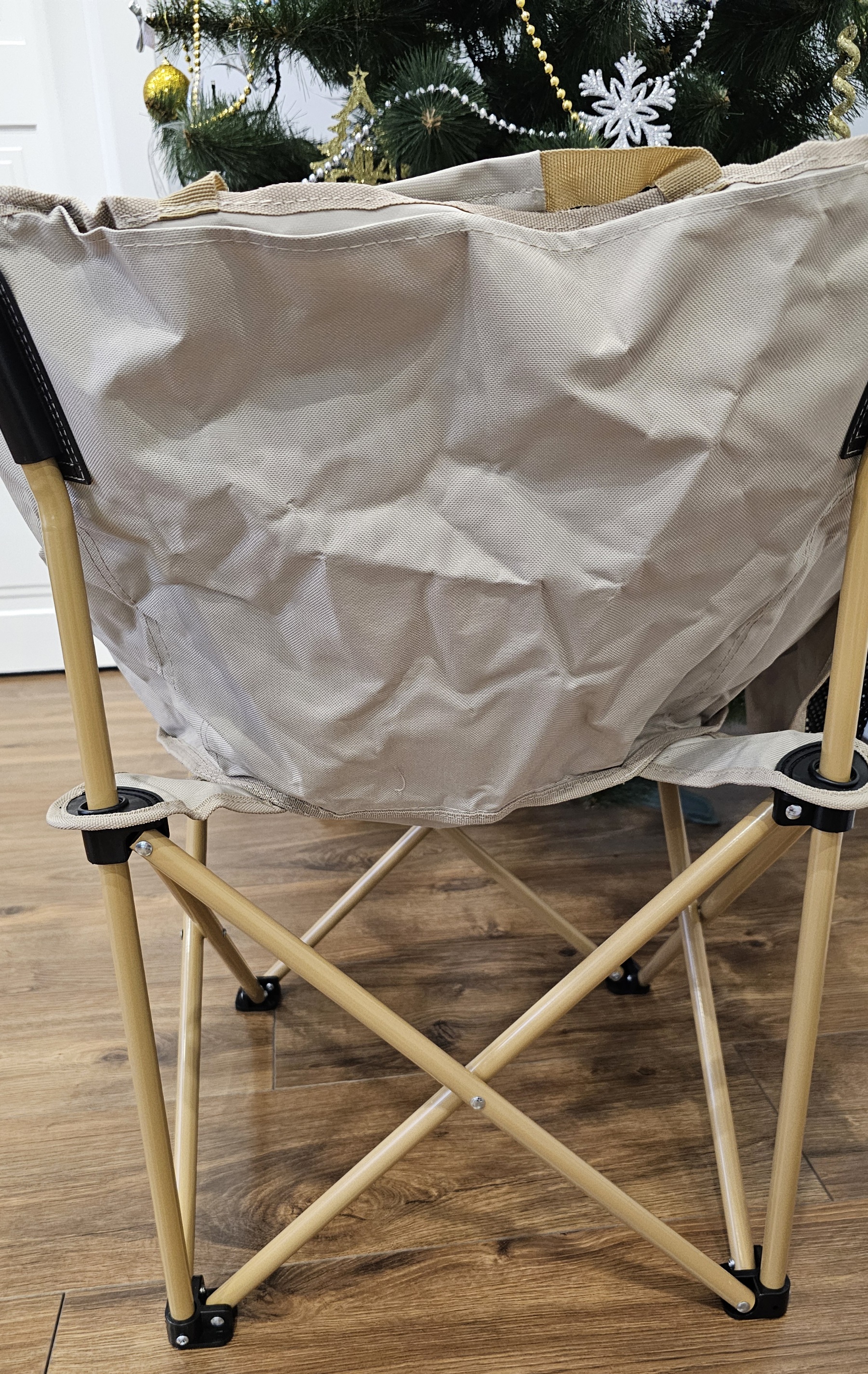 Каркас складається зі сталевих труб (Ø16х0,7 мм), які не бояться високих навантажень і не іржавіють під впливом вологи. Перед тим, як скласти стілець, достатньо протерти каркас сухим, чистим рушником, щоб видалити краплі води або забруднення та зберегти початковий вигляд конструкції на весь період експлуатації. Сидіння та спинка зшиті з поліефірної тканини Оксфорд 600D з гладкою поверхнею, стійкою до появи зачіпок. Щільний матеріал також протистоїть розтягуванню.