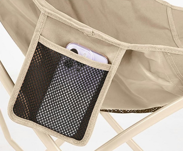 Розміри стільця у встановленому положенні сягають 67х52х71 см. Збоку є сітчаста кишеня для зберігання дрібних предметів, як смартфон, ліхтар, навушники тощо, які хочеться завжди тримати під рукою. Для кращої стійкості конструкції на ніжках передбачені нековзні накладки.