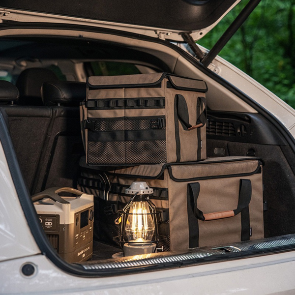 У моделі передбачено кілька секцій для організації похідного спорядження, що переноситься, включно з туристичним посудом різних габаритів, столовим приладдям, газовим пальником із запасними балонами та змінним одягом. У виробі також зручно зберігати харчові продукти. Основний матеріал, з якого виготовлено контейнер - поліуретан. Матеріал протистоїть деформуванню, зберігаючи форму незалежно від ваги вміщених усередину речей. Жорсткі стінки запобігають пошкодженню предметів під час транспортування, а дно, посилене поліетиленовою плитою, не боїться високих навантажень. Із зовнішнього боку контейнера є безліч дрібних петель. На них можна закріпити інструменти, ліхтар та інші предмети, які слід тримати під рукою. Зовнішні сітчасті кишені підходять для зберігання смартфона, ключів тощо. Бічна кишеня закривається за допомогою липучки. Кришка з комплекту захищає предмети від забруднення та намокання. Її можна зняти, щоб компактно скласти виріб. Пара ручок з м'якими вставками забезпечують зручне транспортування сумки та не натирають руки.