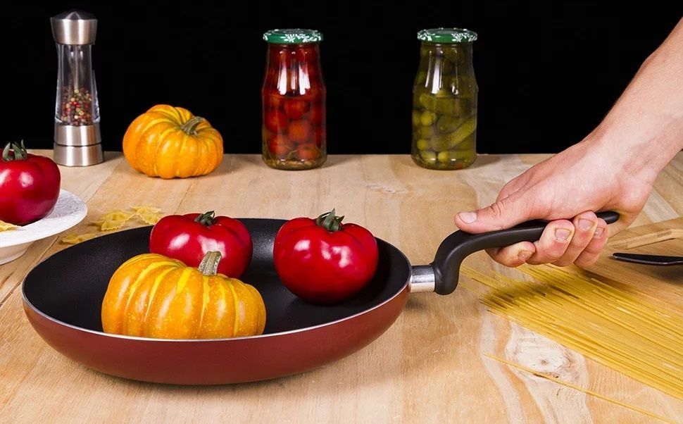 Комфорт під час готування так само важливий, як і якість страви. Продумана ергономічна форма ручки забезпечує надійний та зручний хват, дозволяючи контролювати кожен процес на кухні. Ручка виготовлена з жароміцного бакеліту, який не нагрівається під час використання, забезпечуючи безпеку та комфорт. Сама сковорода виконана зі штампованого алюмінію.
