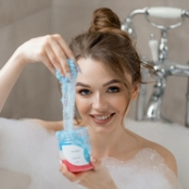 Аромат дитинства — жуйки «Bubble Gum» — ви відчуте в однойменному скрабі-жуйці, який ефективно й ніжно скрабує зайве та піднімає настрій. Результат приємно здивує вже після першого застосування: м'яка, ніжна та гладка шкіра. Цей цукрово-сольовий скраб для тіла з унікальною структурою тягнеться, як справжня жуйка: потягніть, відірвіть невеликий шматочок, масажуйте тіло та насолоджуйтесь чарівним ароматом і приємною процедурою скрабування. Під час контакту з водою засіб перетворюється на ніжне молочко, яке очищає шкіру, не залишаючи жирної плівки.
