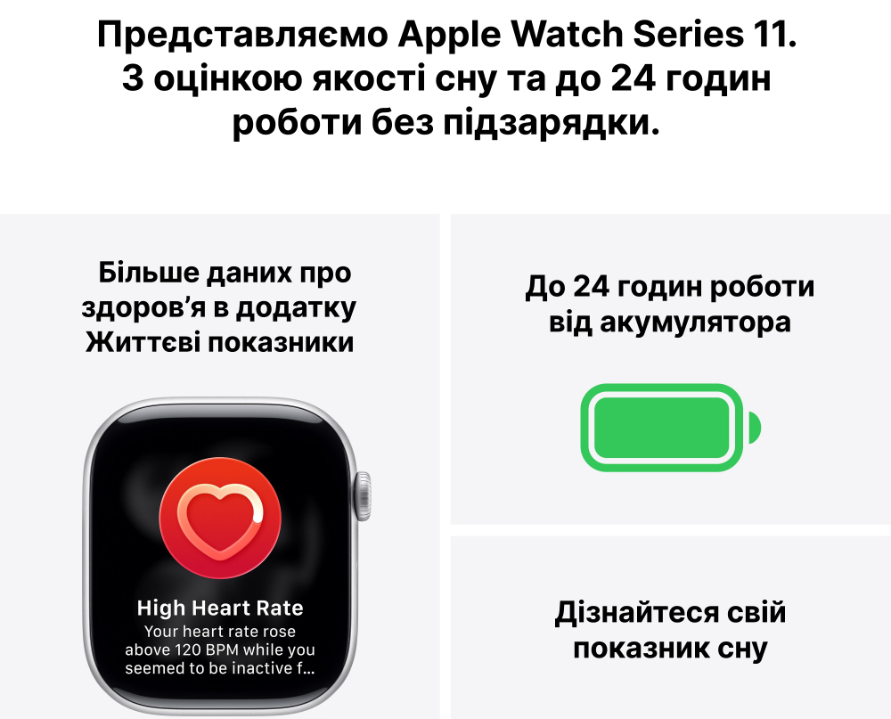 Схожі товари Смарт-годинник Apple Watch Series 11 GPS 46mm Space Grey Aluminium Case with Black Sport Band - M/L