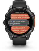 Здійснюйте та приймайте дзвінки зі спортивного годинника, якщо він підключений до вашого смартфона. Крім того, керуйте функціями годинника за допомогою голосових команд без підключення до мережі або використовуйте голосовий асистент смартфона, щоб відповідати на текстові повідомлення та виконувати інші дії.
